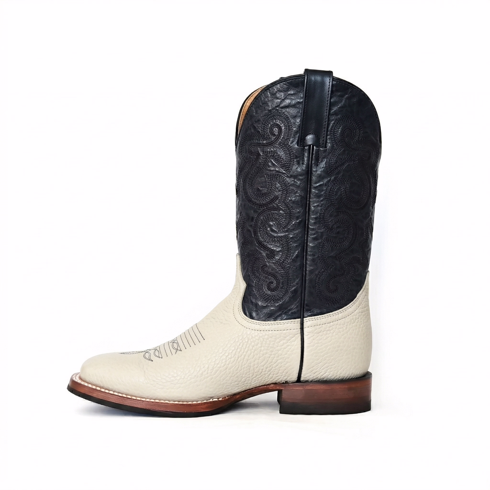 Bota estilo vaquero con acabados artesanales. Visualiza cómo nuestras pieles premium resaltan el diseño western tradicional.